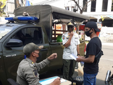 Sanksi menyapu jalan selama 60 menit dijatukan petugas Satpol PP Kecamatan Pasar Rebo kepada 10 warga yang tidakā¦