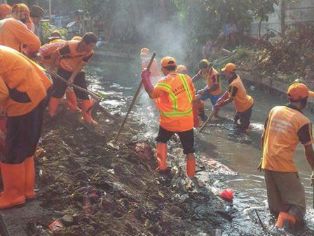 “Petugas juga memapas batang pohon, ranting serta rumput liar yang tumbuh di pinggir kali,” kata Atiaturrahman.