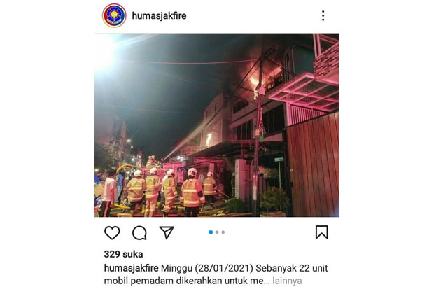 “Kami kerahkan 105 personel untuk proses pemadaman”, ujar Sunaryo dalam keterangannya yang dikutip dari akun Instagram @Jakartafire, Minggu (28/2/2021).