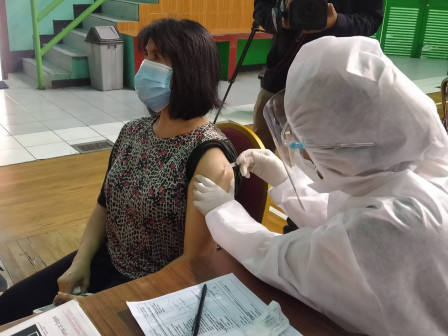 Sebanyak 300 warga mendapatkan layanan vaksinasi mobile di GOR Makasar, Jakarta Timur, Senin (19/7).…