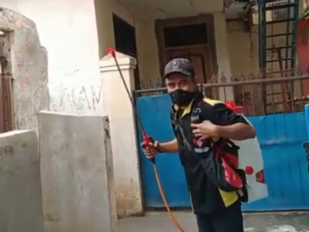 Relawan Kesehatan (Rekan) Indonesia bekerja sama dengan Suku Dinas Penanggulangan Kebakaran dan Penyelamatan (Sudin Gulkarmat) Jakarta Timur, MInggu (27/9), melakukan penyemprotan cairan disinfektan di pemukiman warga RT 09, 10 dan 11 RW 07 Kelurahan Cililitan.