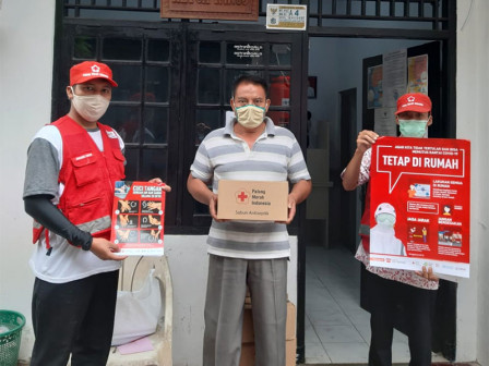 Palang Merah Indonesia (PMI) Jakarta Timur hari ini membagikan sebanyak 576 pcs sabun antiseptik pada warga RW 12, Kelurahan Cibubur, Ciracas.