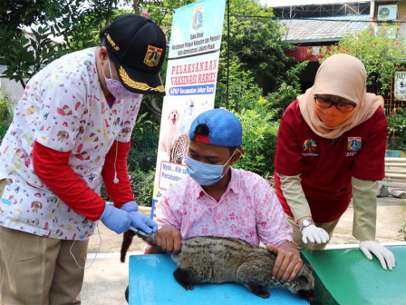 Sebanyak 86 hewan penular rabies (HPR) di Kelurahan Tanah Tinggi diperiksa serta divaksinasi oleh Suku Dinas Ketahanan Pangan, Kelautan, dan Pertanian (KPKP) Jakarta Pusat, Selasa (7/9).