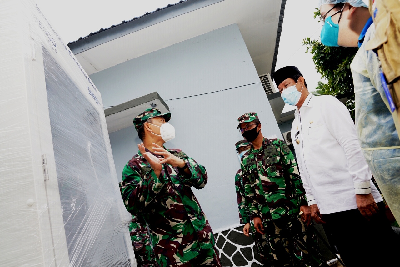 Gubernur Kepri, H. Isdianto melakukan peninjauan terhadap Alat PCR sekaligus menyaksikan serah terima bantuan alat Streamline Swab Booth (SSB) Kepada Rumkital Dr.Midiyato, Tanjungpinang, Rabu (29/7).