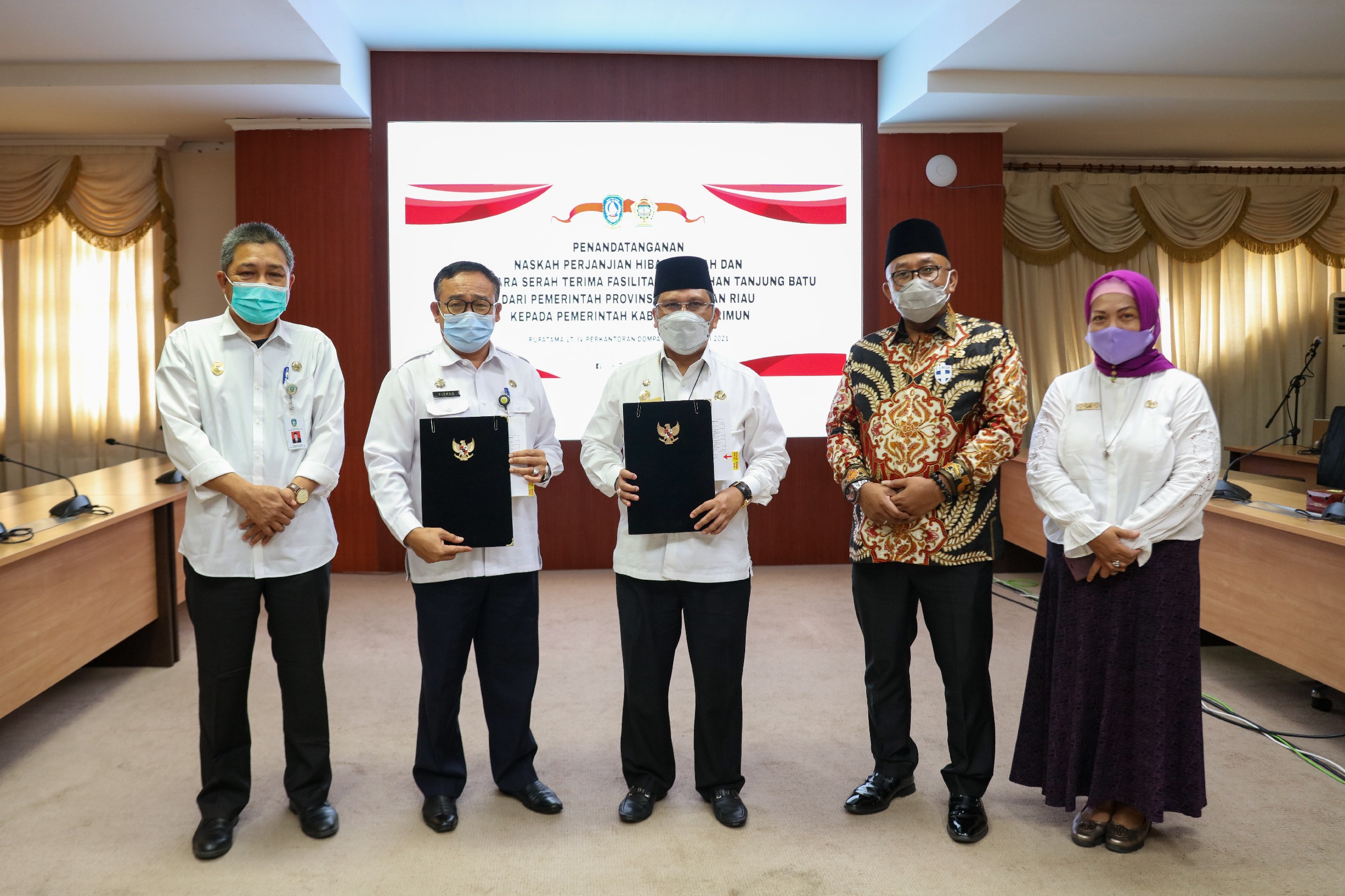 Sekretaris Daerah H. T.S. Arif Fadilah melakukan Penandatangan Naskah Perjanjian Hibah Daerah dan Berita Acara Serah Terima Fasilitas Pelabuhan Tanjung Batu dari Pemerintah Provinsi Kepulauan Riau kepada Pemerintah Kabupaten Karimun diRuang Rapat Utama Kantor Gubernur Pulau Dompak, Tanjungpinang, Rabu (10/2).