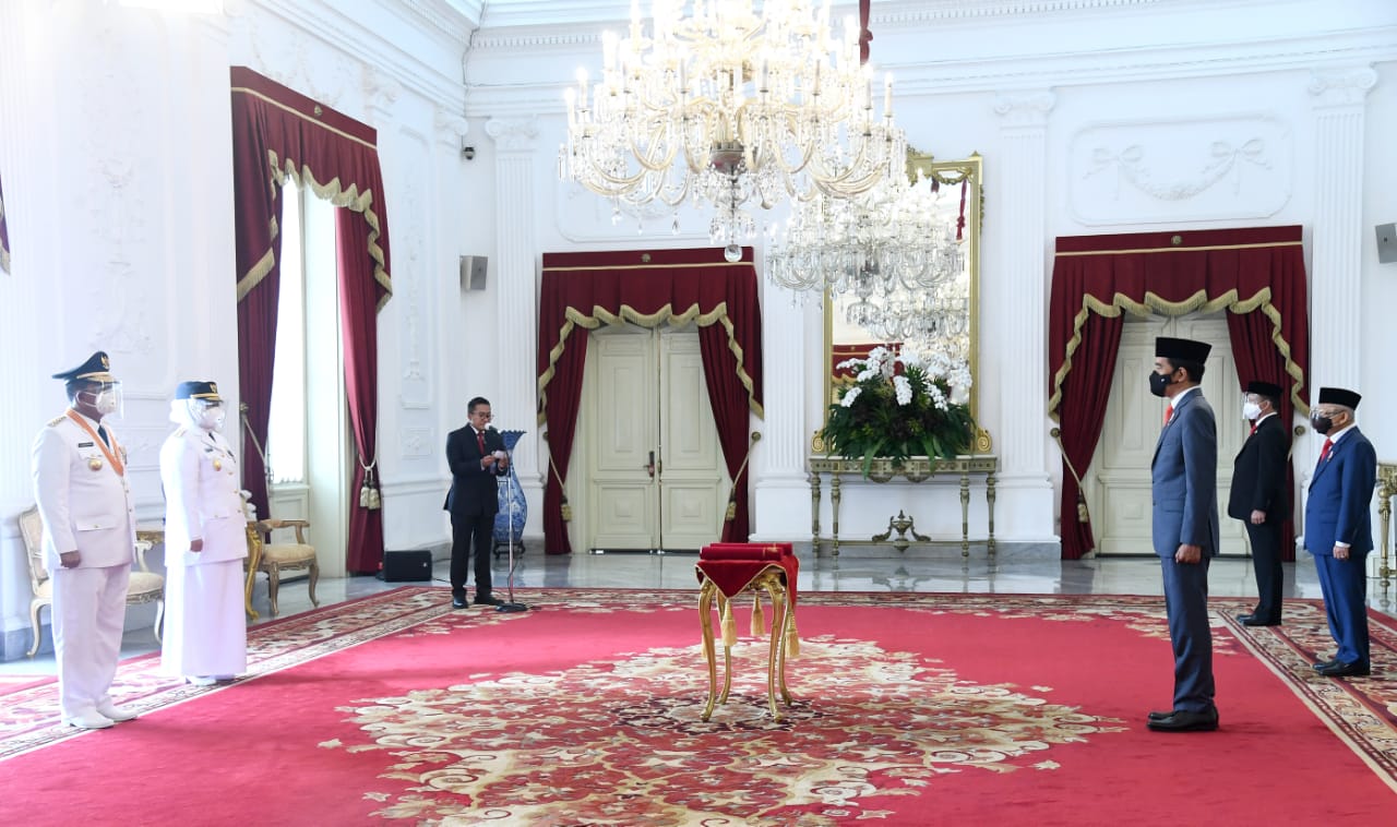 Di ruang Credential, para Gubernur dan Wakil Gubernur diperkenalkan kepada Presiden Joko Widodo. Setelah dipersilakan oleh Presiden Gubernur dan Wakil Gubernur mengambil Surat Keputusan Presiden di atas meja yang telah disiapkan