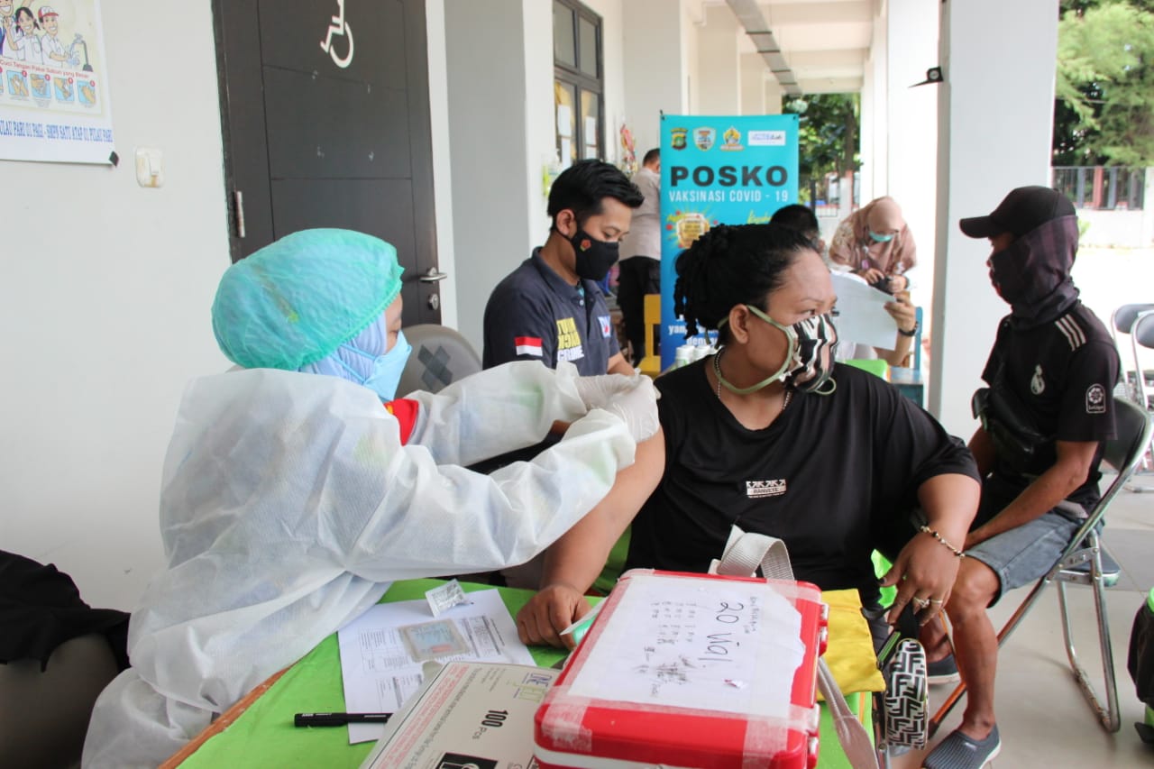 Jakarta-Dalam rangka program percepatan Vaksinasi Nasional Covid-19 dan menyambut HUT Bhayangkara ke 75, Polres Kepulauan Seribu bersama Polsek Kepulauan Seribu Selatan dan Kampung Tangguh Jaya Pulau Pari kembali mengadakan kegiatan suntik vaksin massal di SDN 01 Pulau Pari Kecamatan Kepulauan Seribu Selatan. Jumat (25/6/2021).
