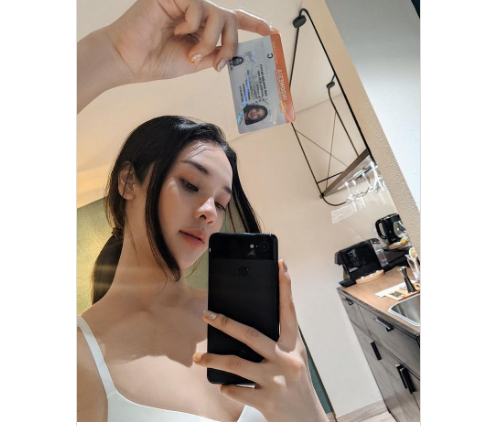 Dengan mengenakan tank top berwarna putih, Anya memamerkan SIM C yang dikhusukan untuk pengendara roda dua yang diperkirakan baru dimilikinya itu.