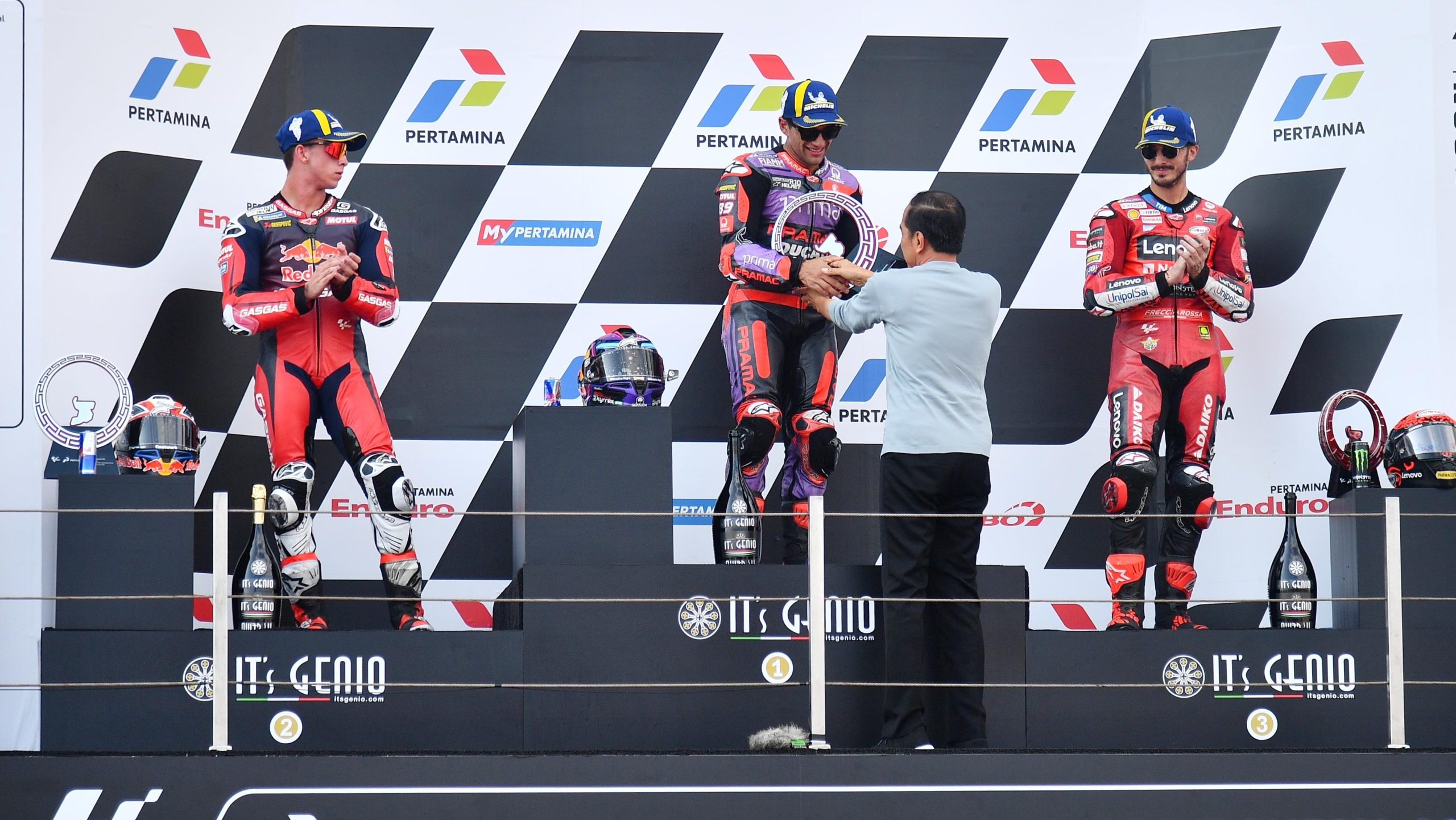 Presiden Joko Widodo menyampaikan apresiasi terhadap perkembangan penyelenggaraan MotoGP di Indonesia dalam tiga tahun terakhir. Apresiasi tersebut disampaikan Kepala Negara usai menyaksikan langsung ajang balap motor dunia, Pertamina Grand Prix of Indonesia 2024, di Sirkuit Internasional Pertamina Mandalika, Kabupaten Lombok Tengah, pada Minggu, 29 September 2024.