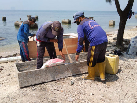 Rouf menjelaskan, pembuatan terminal sumur resapan tersebut dikerjakan lima personel Sudin SDA Kepulauan Seribu.