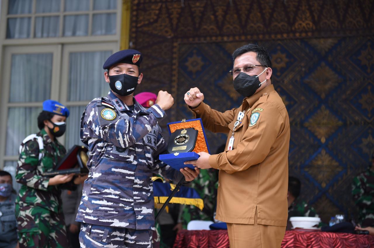 Dalam kegiatan ini juga Pangkogawilhan I menyerahkan masker sebanyak 2600 pack kepada taruna AAL dan dilanjutkan penyerahan Plakat ke Pemerintah Provinsi Kepulauan Riau.