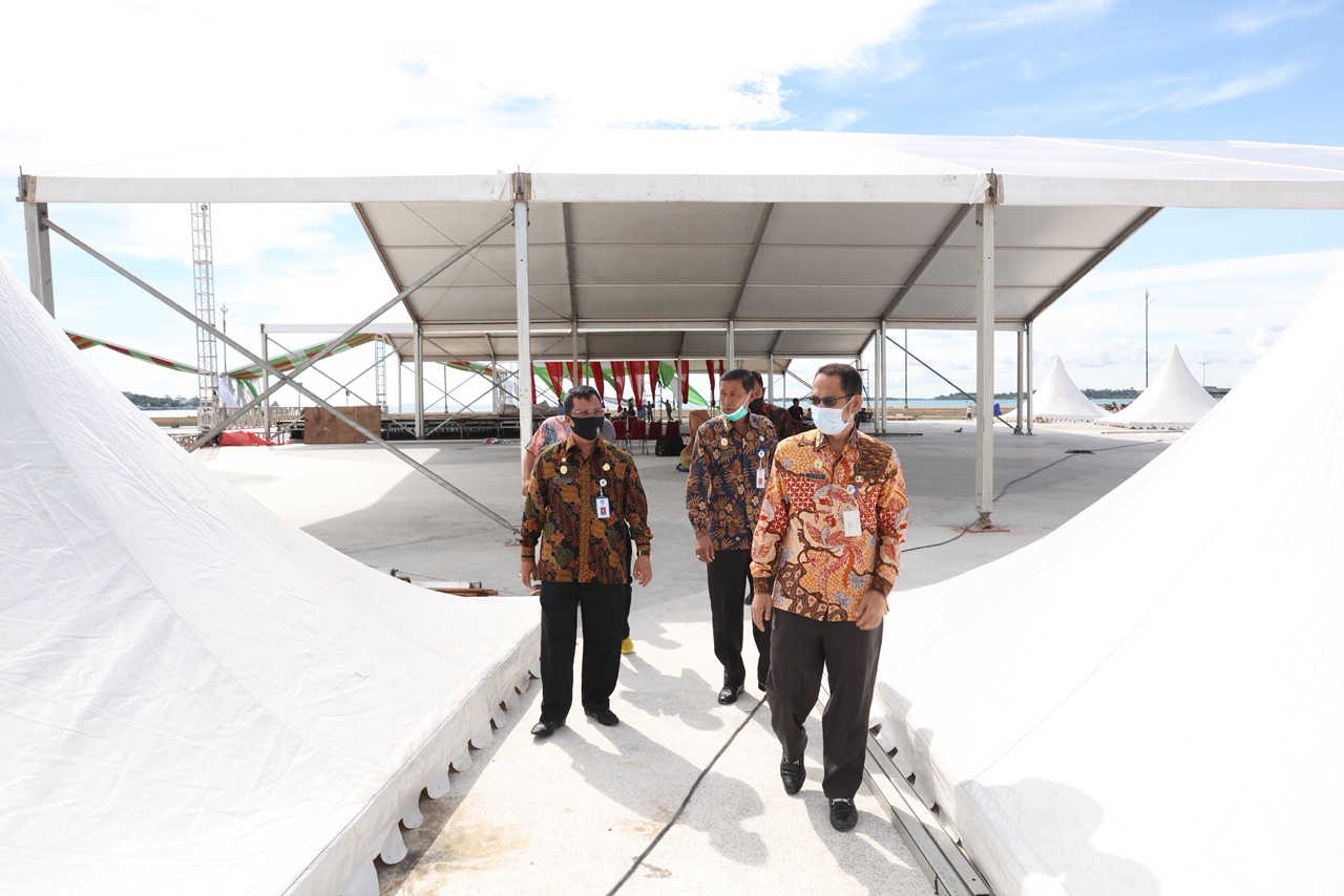 Sekretaris Daerah, H. TS Arif Fadilah kembali meninjau persiapan fasilitas Musabaqah Tilawatil Quran (MTQ) Provinsi Kepulauan Riau ke VIII tahun 2020 di Area Gurindam XII Tepi Laut, Tanjungpinang, Kamis (10/9) petang.