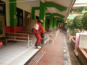 Sudin Gulkarmat Jaktim Semprot Disinfektan Dua Sekolah