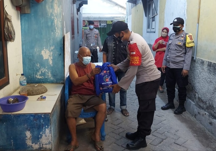 Bagikan Bansos kepada 69 KK Slum Area, Polres Kep Seribu Ajak Warga Patuh Aturan PPKM dan Terapkan ProKes