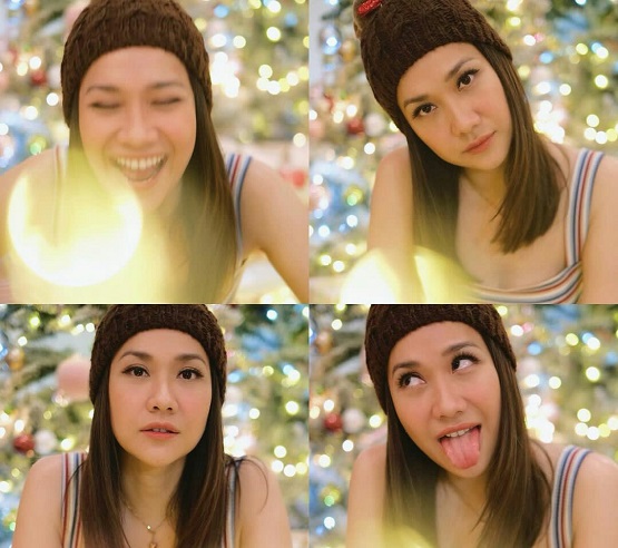 Ibu Noah Sinclair itu tampak mengkolase empat foto selfienya dengan ekspresi yang berbeda-beda. Penampilannya lebih fresh dan manis bak gadis ABG BCL tampil dengan tanktop dipadukan dengan topi kupluk rajut berwarna cokelat.