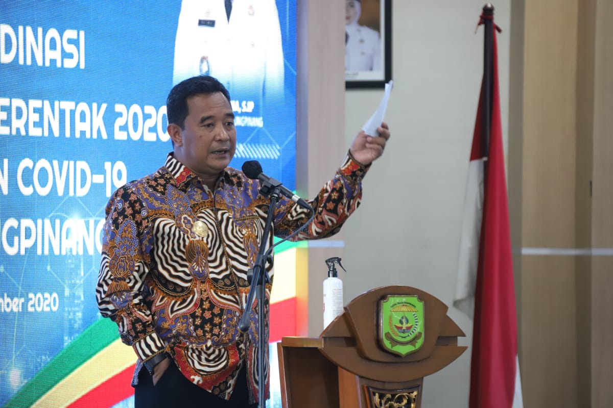 Pejabat Sementara (Pjs) Gubernur Kepulauan Riau Bahtiar Baharuddin menggelar Rapat Koordinasi Kesiapan Pilkada Serentak Tahun 2020 dan Penanganan Covid-19. Rapat ini juga disejalankan dengan penyerahan bantuan masker untuk Kota Tanjungpinang di Aula Sultan Sulaiman Badrul Alamsyah, Kantor Walikota Tanjungpinang, Senin (23/11).