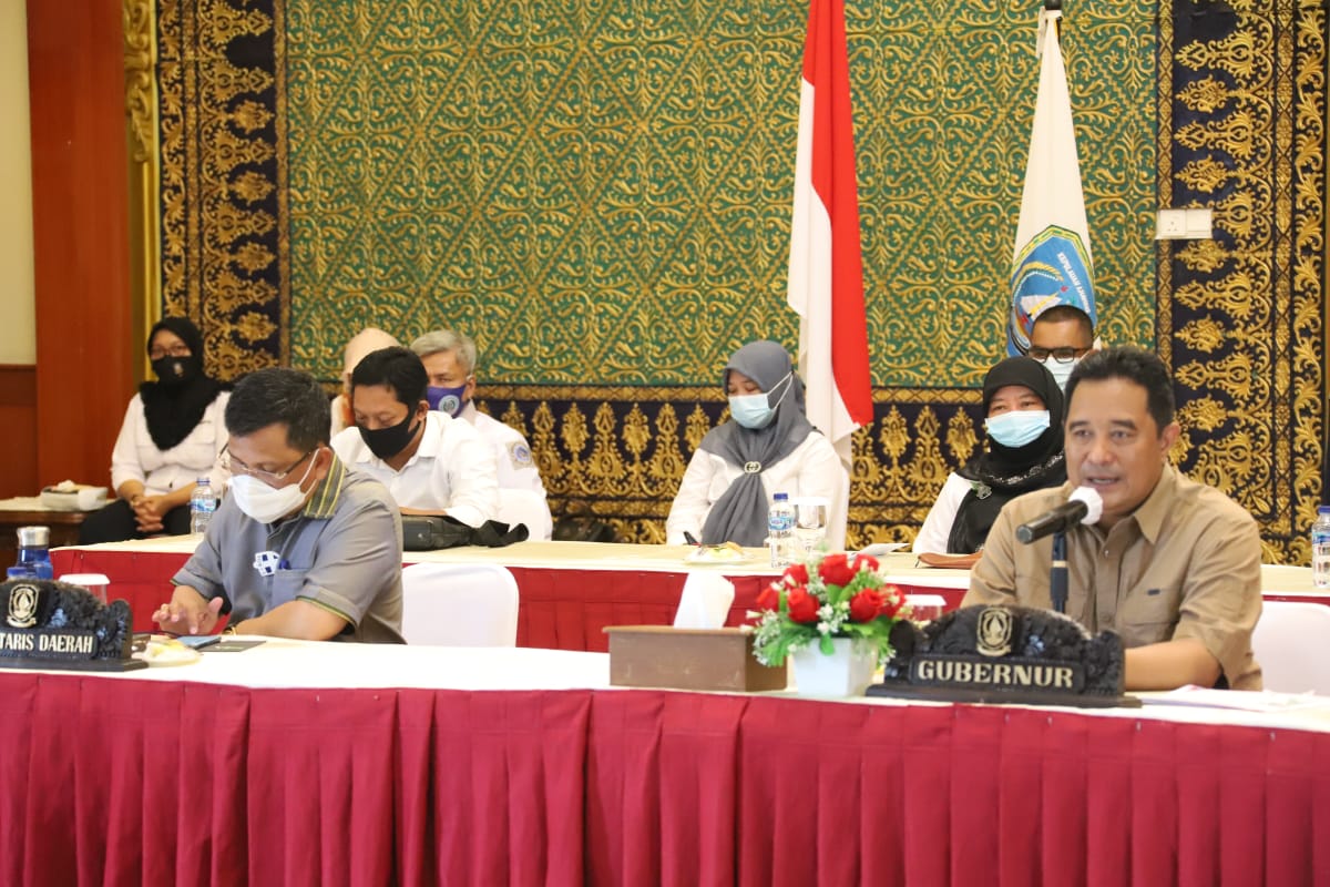 Penjabat Sementara (Pjs) Gubernur Kepri, Bahtiar Baharuddin memimpin rapat bersama jajaran Badan Kesbangpol se-Provinsi Kepri melalui vicon dari Gedung Daerah, Ahad (25/10) pagi.