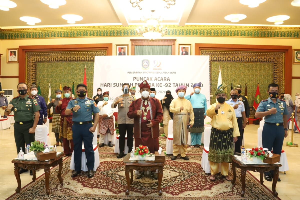 Pjs. Gubernur Kepulauan Riau H. Bahtiar mengikuti Puncak acara Hari Sumpah Pemuda (HSP) ke- 92 Tahun 2020 yang di hadiri oleh Bapak Presiden RI Joko Widodo melalui Aplikasi Zoom dari Gedung Daerah, Tanjungpinang, Rabu (28/10).