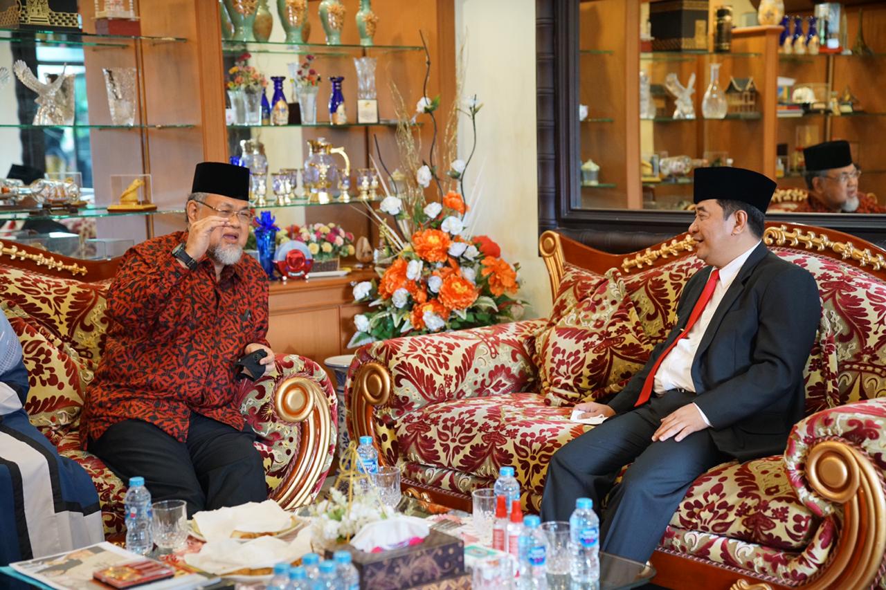 Pjs. Gubernur Kepri Bahtiar Baharuddin bersilaturahmi ke kediaman tokoh BP3KR H. Huzrin Hood di Sei Jang, Tanjungpinang, Kamis (1/10).