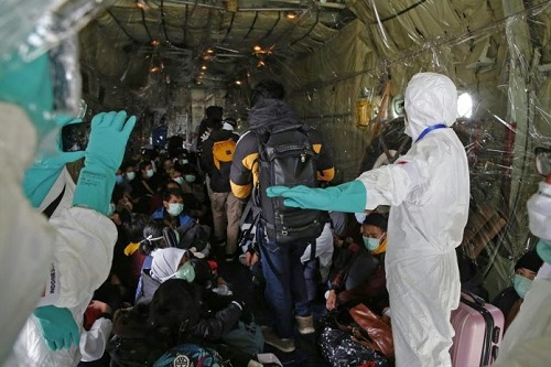 Dari Batam mereka kemudian dipindahkan ke Natuna dengan pesawat milik TNI-AU untuk menjalani karantina selama 14 hari.