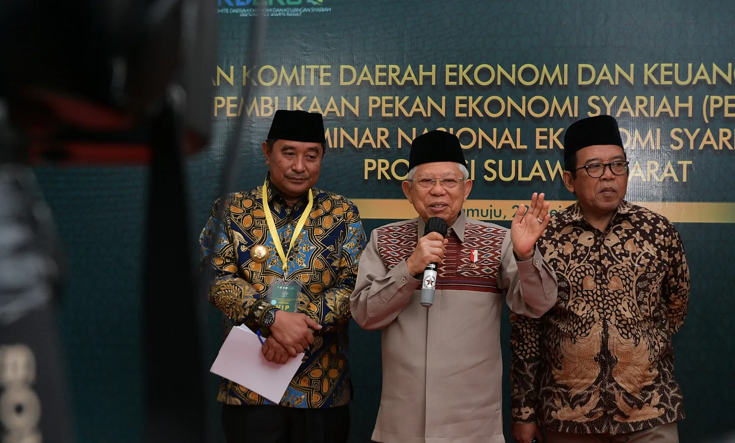 Mendampingi Wapres saat memberikan keterangan pers ini, Pj. Gubernur Sulbar Bahtiar Baharuddin, Plt. Direktur Eksekutif KNEKS Taufik Hidayat, dan Staf Khusus Wapres Masduki Baidlowi. (DMA/AS, rls)