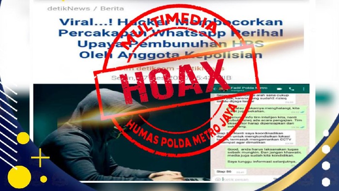 “Itu hoaks. Bahwa ada percakapan Bapk Kapolda Metro Jaya dalam percakapan WhatsAppnya ini. Saya jelaskan bahwa ini adalah berita tidak benar,” kata Kabid Humas Polda Metro Jaya (Kombes. Pol. Drs. Yusri Yunus).