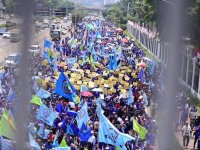 Ia juga mengatakan, bahwa buruh dijadikan korban atas kerakusan penguasa yang mencoba menyuburkan pemerintah oligarki di tengah kondisi rakyat lagi sakit.