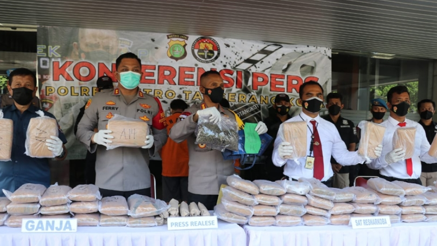 “Untuk barang bukti(ganja yang diamankan ada sekitar 65.229 gram,” ujar Kapolres Metro Tangerang Kota (Kombes. Pol. Deonijiu de Fatima).
