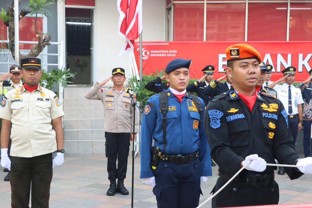 Untuk komandan upacara Kapolsek Metro Gambir Kompol Nababan, pengibar bendera oleh petugas KAI dan peserta upacara personel gabungan Muspika.