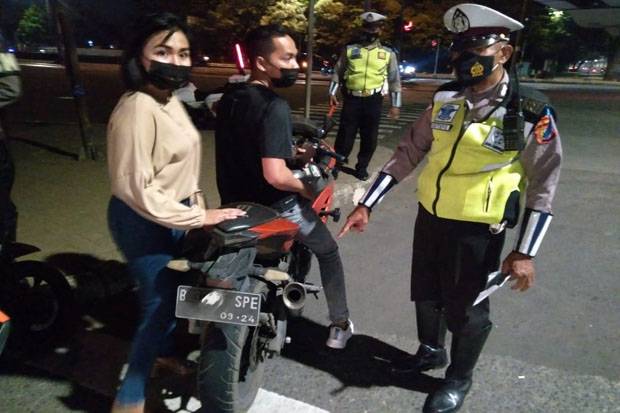 DEPOK – Petugas kepolisian tak kenal lelah menggelar razia dan patroli untuk menertibkan pengendara atau sepeda motor yang melanggar peraturan lalu lintas, Minggu (25/4/2021). Mulai tengah malam hingga dini hari pada bulan Ramadhan , kepolisian dari wilayah Kota Depok, Jakarta Pusat, sampai Jakarta Utara, memburu para pelanggar lalu lintas.