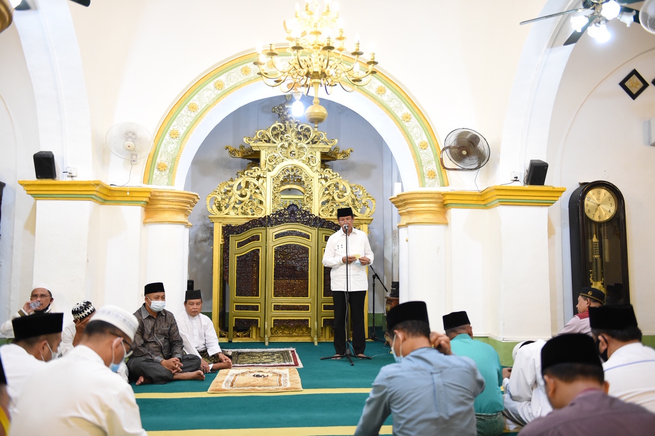 Gubernur Kepulauan Riau H. Isdianto melakukan Sholat Maghrib Berjamaah dilanjutkan Silaturahmi Bersama Masyarakat Penyengat di Masjid Sultan Riau Penyengat, Tanjungpinang, Selasa (28/07) malam.