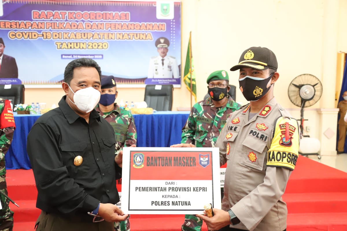 “Untuk itu saya membagikan 100.000 masker kepada pemerintah daerah, TNI, Polri dan Instansi lainnya yang ada di Natuna dan untuk dibagikan kepada masyarakat,” kata Bahtiar saat penyerahan masker secara simbolis di Gedung Sri Serindit, Natuna, Selasa ( 24/11).