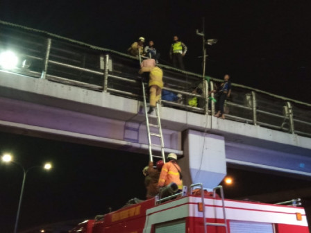 Evakuasi dilakukan dari atap Jembatan Penyebarangan Orang (JPO), Jalan Tol Jagorawi KM 13, Cibubur, Ciracas, pukul 01.10 dinihari tadi.