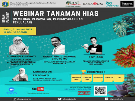 Terkait hal tersebut, Dinas Ketahanan Pangan, Kelautan dan Pertanian (Dinas KPKP) DKI Jakarta mengadakan Webinar Tanaman Hias (Pemilihan, Perawatan, Perbanyakan, dan Penjualan) yang ditayangkan secara live streaming melalui Zoom dan YouTube Go JakFarm DKI Jakarta.