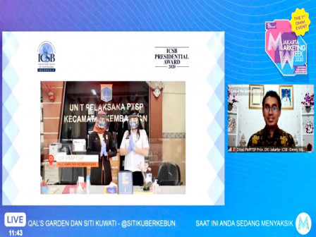 Penghargaan ini merupakan bagian dari rangkaian acara Jakarta Marketing Week 2020. Penghargaan diserahkan secara virtual oleh President ICSB Indonesia, Jacky Mussry, dan diterima oleh Wakil Kepala Dinas PMPTSP Provinsi DKI Jakarta, Denny Wahyu Haryanto.