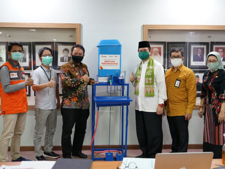 Plt Kepala Dinas PPKUKM DKI Jakarta, Andri Yansyah mengapresiasi bantuan wastafel yang diberikan oleh Kantor OJK Regional 1 DKI Jakarta dan Banten.