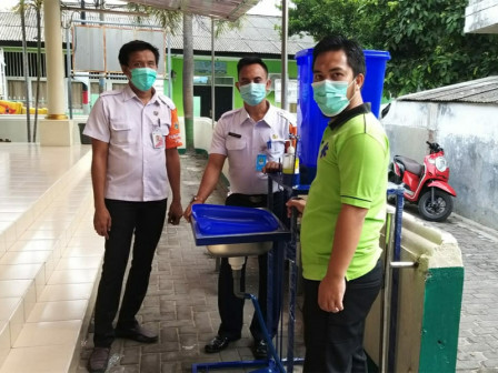 Kelurahan Pulau Panggang, Kecamatan Kepulauan Seribu Utara mendistribusikan dua unit wastafel sebagai sarana cuci tangan kepada pengurus Masjid An-Ni’mah.