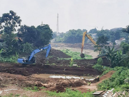 Empat alat berat dikerahkan Sudin Sumber Daya Air Jakarta Timur untuk pengerukan Waduk Munjul di Jl Wijaya Kusuma RW 04…