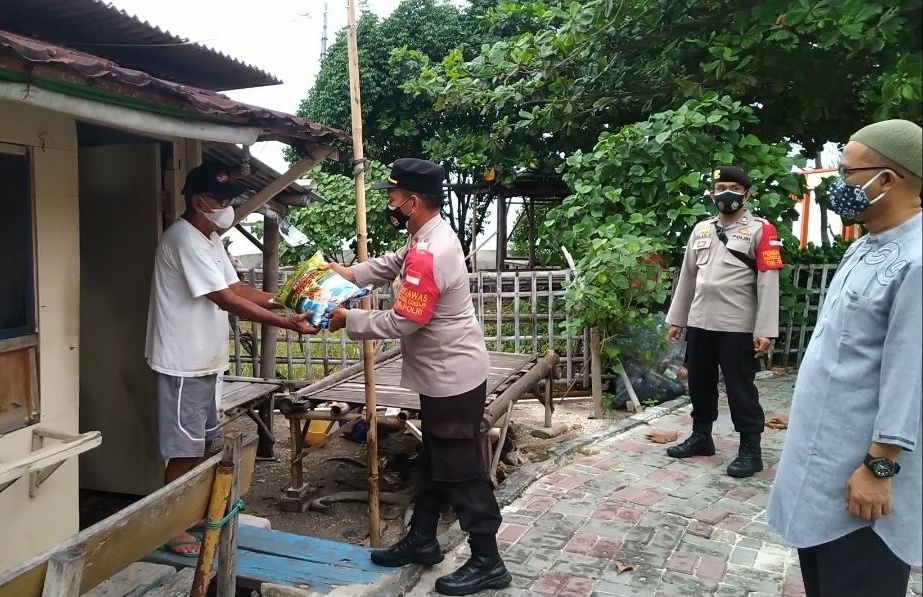 JAKARTA – Dalam rangka Empati Building terhadap warga yang terdampak COVID-19 dimasa PPKM Darurat, Kepala Satuan Pembinaan Masyarakat (Kasat Binmas) Polres Kepulauan Seribu IPTU Abdul Kadir bersama anggota Polsubsektor Pulau Lancang Polsek Kepulauan Seribu Selatan dan Tokoh Masyarakat setempat menyalurkan Bantuan Sosial (Bansos) kepada warga di Slum Area RW 03 Pulau Lancang Kepulauan Seribu Selatan. Rabu (14/7).