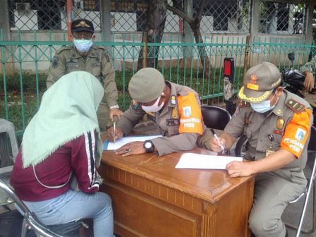 Sebanyak 27 pelanggar terjaring dalam giat tertib masker di Jalan Raya Bungur yang dilakukan Pegawai Penyidik Negeri Sipil (PPSN) Satuan Polisi Pamong Praja (Satpol PP) Kecamantan Senen dan Kelurahan Bungur, Jakarta Pusat, Senin (14/3).