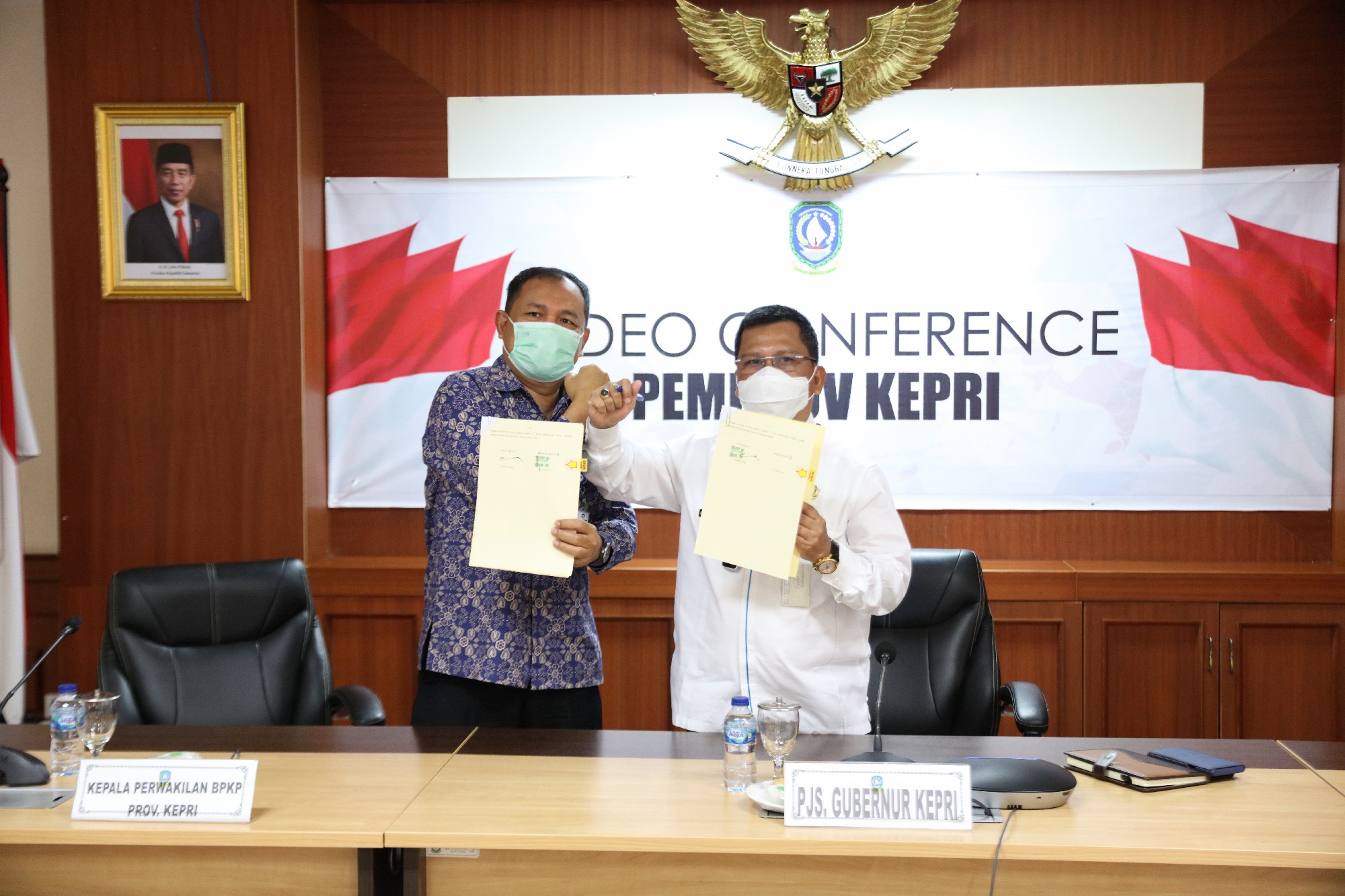 Sekretaris Daerah H. T. S. Arif Fadilah menghadiri dan penandatangan Nota Kesepakatan antara Gubernur dengan Kepala Perwakilan Badan Pengawas Keuangan dan Pembangunan (BPKP) Se-Indonesia tentang Pelaksanaan Pengawasan Penyelenggara Pemerintah Daerah secara virtual di Ruang Rapat Utama Lt.4 Kantor Gubernur Dompak, Tanjungpinang, Rabu (2/12).