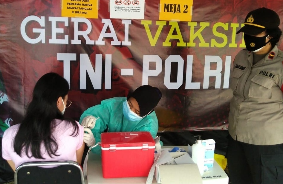 JAKARTA – Gerai Vaksin Presisi Polres Kepulauan Seribu terus melanjutkan kegiatan vaksinasi massal bagi masyarakat dalam rangka percepatan program vaksinasi nasional dan Hari Bhayangkara ke 75. Jumat (23/7).