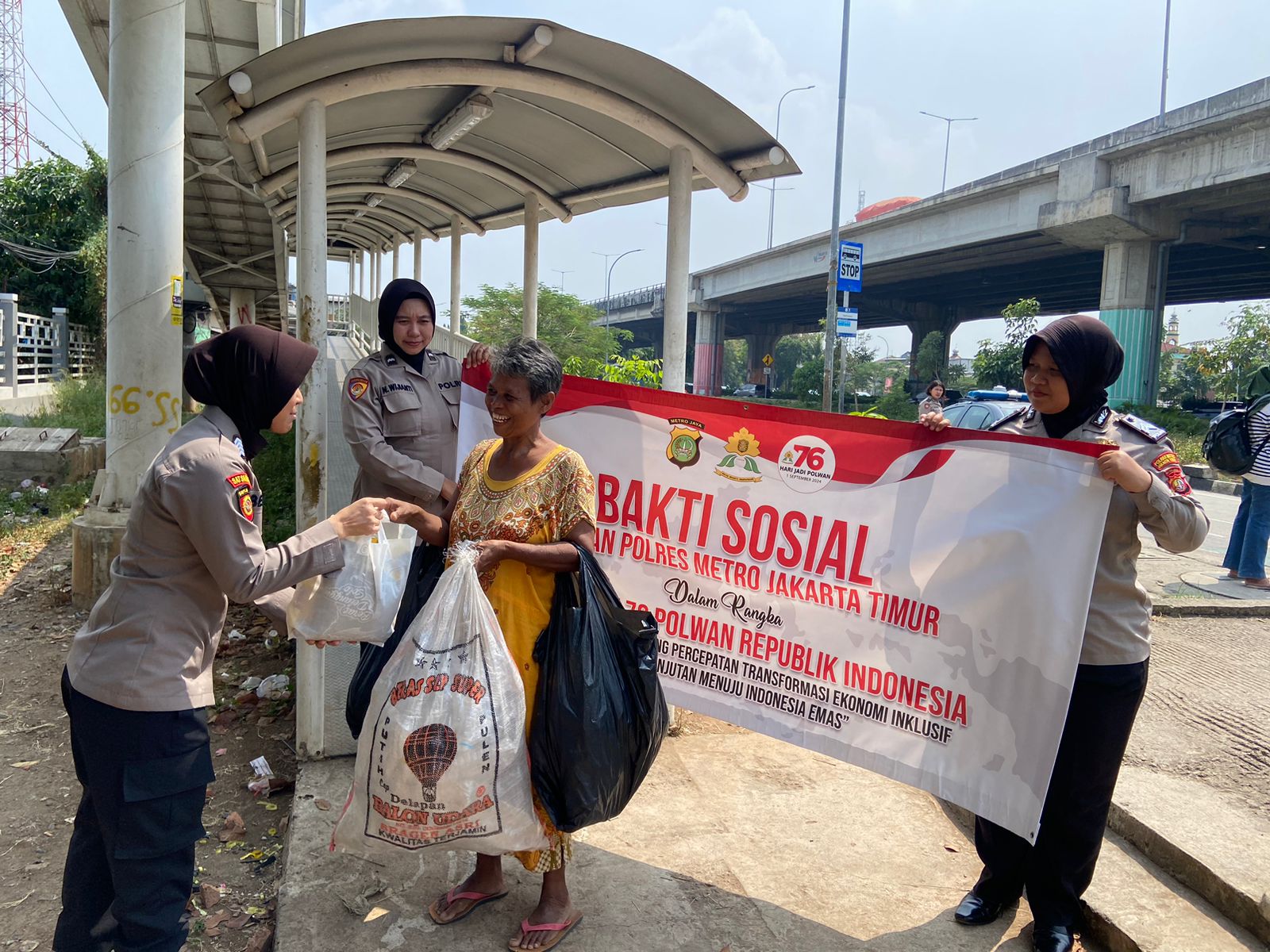Sejalan dengan tema HUT Polwan RI, Jajaran Polwan Polres Metro Jaktim yang dipimpin Iptu Damanik Menyalurkan puluhan paket sembako kepada pemulung , driver ojol dan masyarakat kurang mampu.
