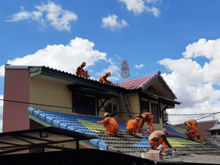 Hunian warga di RW 01,02,03 dan 05, Kelurahan Lenteng Agung, Jagakarsa, Jakarta Selatan, dipercantik dengan cat warna-warni pada bagian atapnya.…