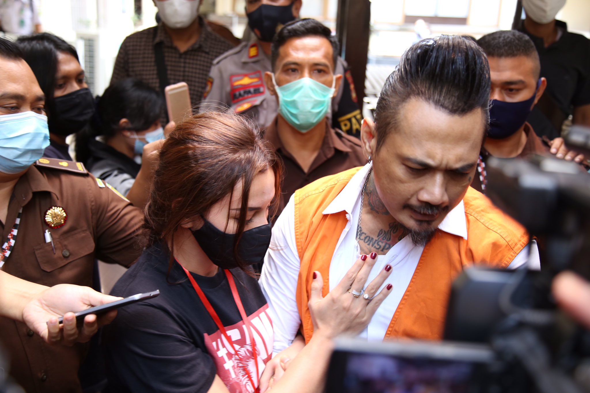 Sang istri, Nora Alexandra setia mendampingi Jerinx dalam setiap agenda persidangan. Pun pada sidang kemarin itu. Nora lah yang terus menopang agar amarah Jerinx tidak menjadi-jadi. Terlihat ia terus mengusap wajah suaminya agar lebih tenang dan tabah. Mencium hingga memeluk.