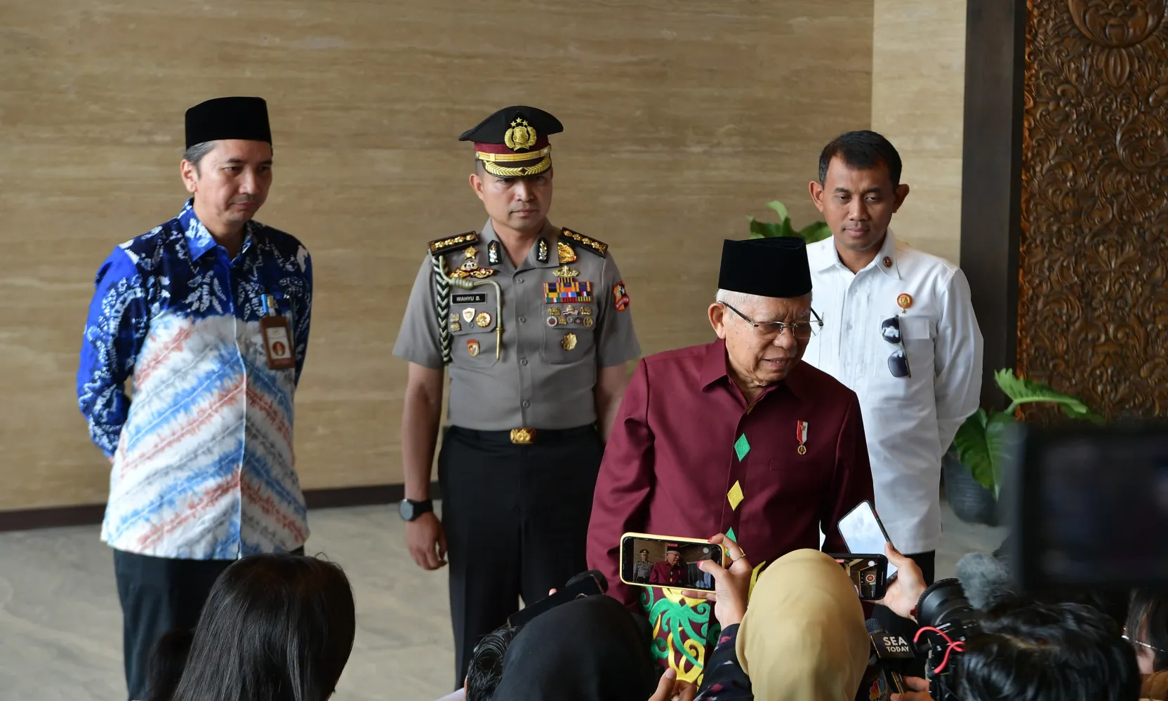 “Wah, saya kira sangat gembira karena pekerjaan semua kita bagus, hasil-hasil juga yang dicapai juga maksimal, dan kepercayaan masyarakat juga tetap tinggi, kepuasan masyarakat,” imbuh Wapres.