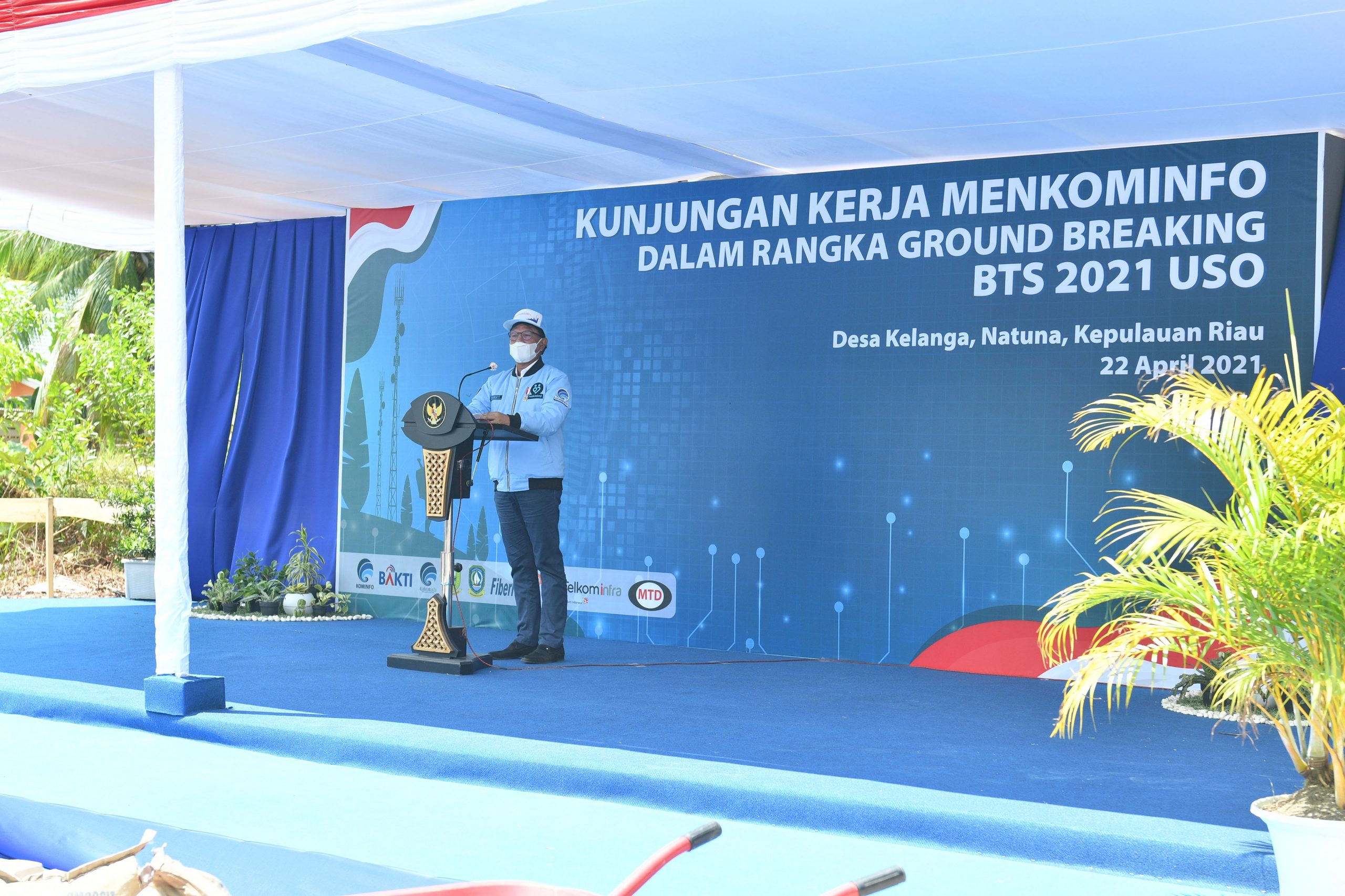 Ground breaking BTS ini merupakan program Universal Service Obligation (USO) yang digagas BAKTI Kementerian Komunikasi dan Informatika yang bertujuan guna menyatukan nusantara dalam hal ketersediaan sinyal di wilayah 3T. Pembangunan BTS ini dilaksanakan oleh Konsorsium yang terdiri dari perusahaan Fiberhome, Telkom infra, dan MTD. Program pembangunan BTS ini akan dibangun sebanyak 17 BTS untuk 17 desa di Natuna.