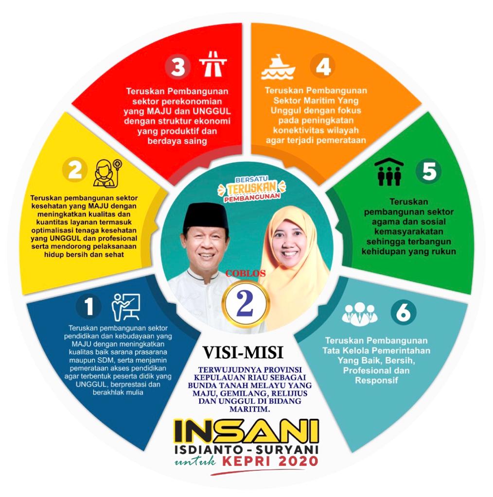 Di sisi lain, Isdianto yang merupakan adik kandung almarhum Muhammad Sani memastikan siap melanjutkan kepemimpinanya di Kepri. Mengusung moto Bersatu Teruskan Pembangunan, pasangan INSANI berkomitmen mewujudkan Provinsi Kepulauan Riau sebagai Bunda Tanah Melayu yang Maju, Gemilang, Religius, dan Unggul di Bidang Maritim.