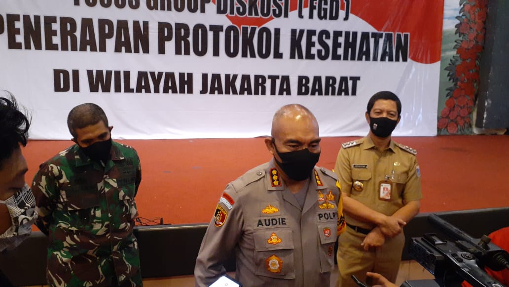 Kapolres Metro Jakarta Barat Kombes Pol Audie S Latuheru didampingi Wali Kota Jakarta Barat H Rustam Effendi, mengatakan bahwa dalam kegiatan focus group discussion ini membahas tentang bagaimana langkah TNI-Polri serta Tiga Pilar dalam menghadapi New Normal yang sebentar lagi akan diterapkan oleh pemerintah bagaimana Protokol Kesehatan di Jakarta Barat.