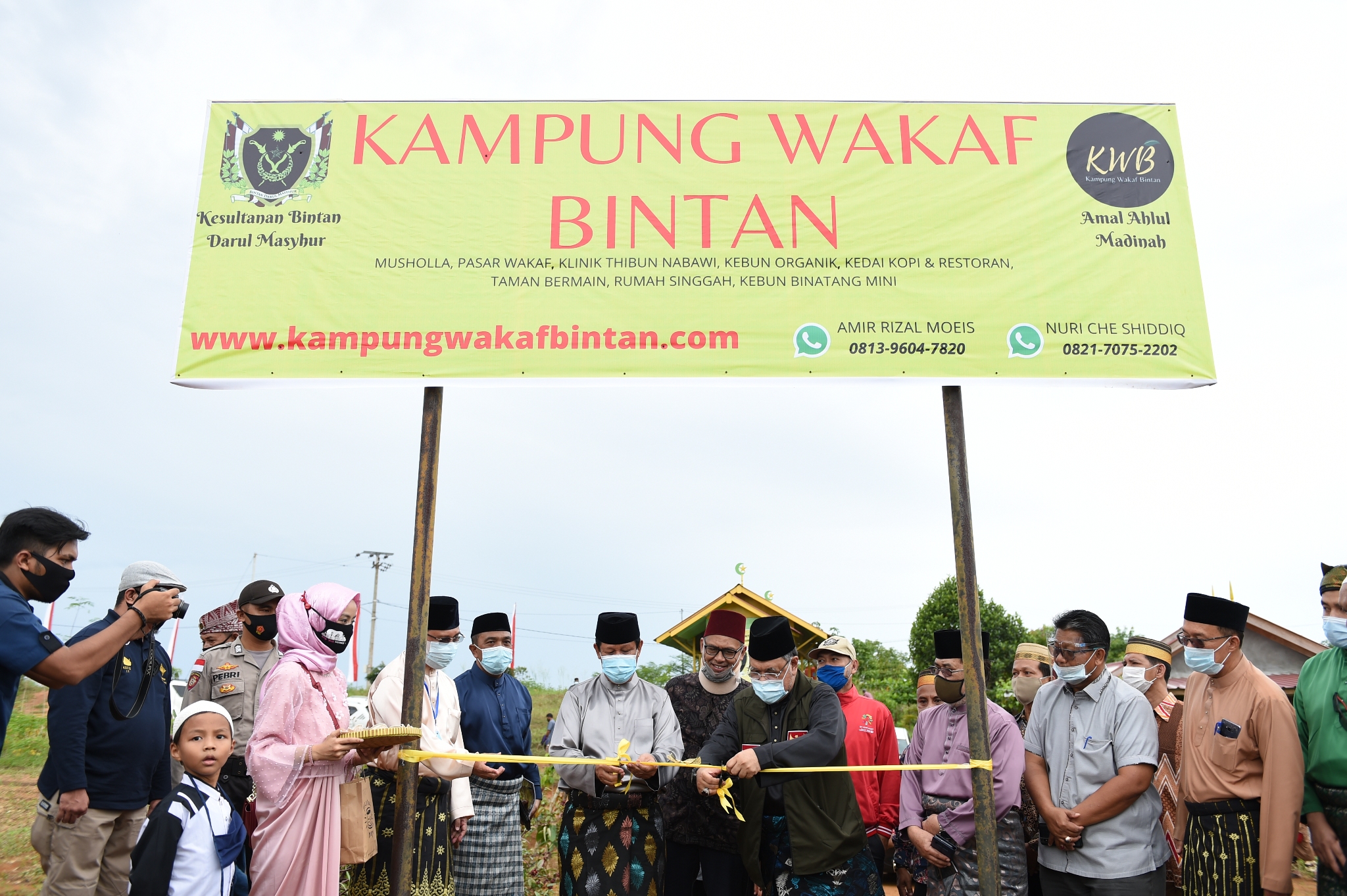 Gubernur Kepulauan Riau, H. Isdianto meresmikan Kampung Wakaf Bintan yang berlokasi di Jl. Lintas Barat Km. 17,5, Bintan, Ahad (16/8). Peresmian itu ditandai dengan pemotongan pita di gerbang kedatangan, juga dilakukan peletakan batu pertama pembangunan Pasar Wakaf Bintan.
